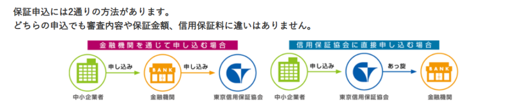 通常、保証協会付き融資の申し込みは銀行の窓口を経由しますが、保証協会の窓口へ直接相談に行くルートも存在します。